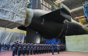 Stapellauf des strategischen U-Bootes "Emperator Aleksandr III" der "Borey"-Klasse. Foto: MoD Moskau