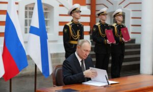Zeremonielle Unterzeichnung der neuen Marinedoktrin durch Vladimir Putin. Fot: Staatl. Medien
