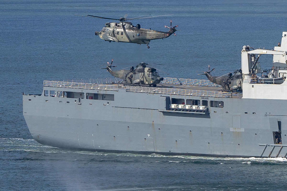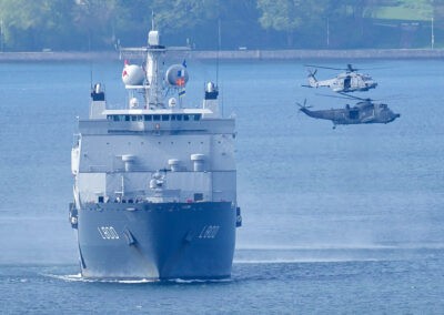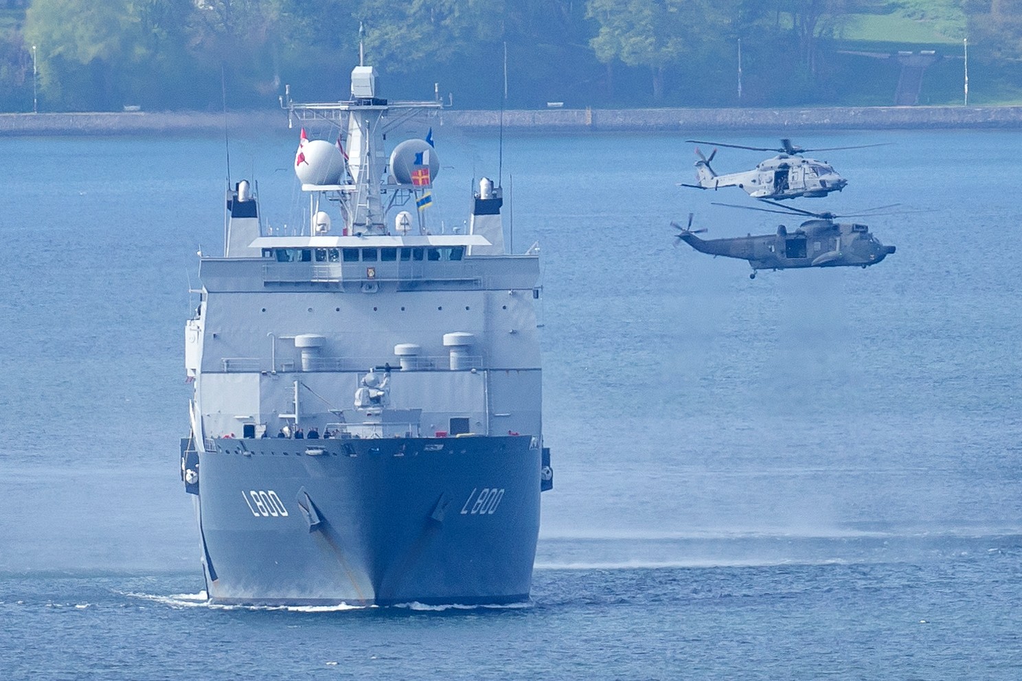 Ganz besondere Fotos hat uns Michael Nitz übermittelt. Das Royal Netherlands Navy Landing Platform Dock HNLMS Rotterdam (L 800) in der Kieler Förde im Mai: mit der Kielllinie (ex Hindenburgufer) im Hintergrund inklusive der eingeschifften Sea King-Helikopter-Komponente der Deutsche Marine. Währendessen Besuch durch einen Sea Lion.