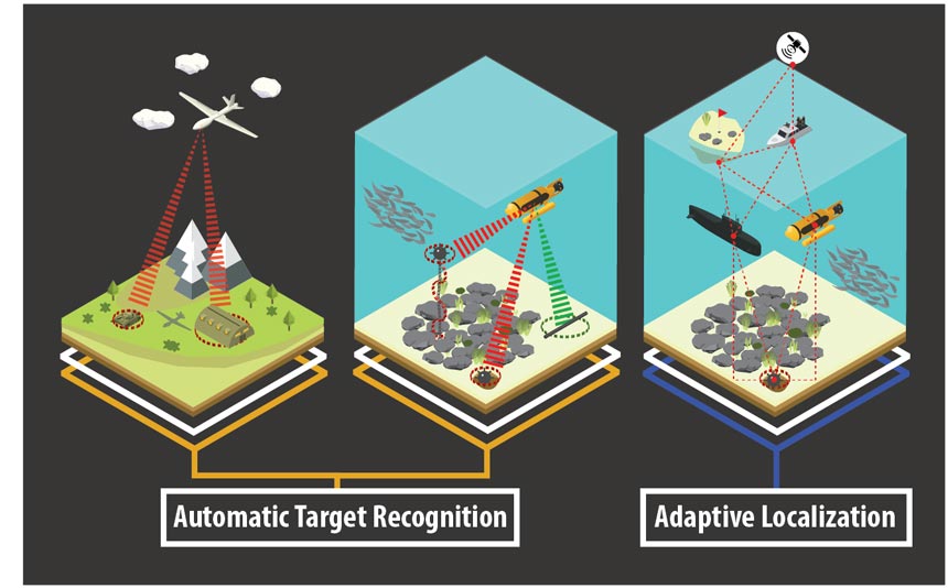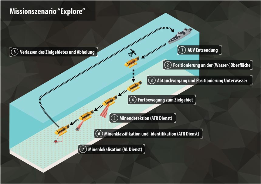 Am Institut für Angewandte Informatik der Universität der Bundeswehr München forschen Professor Andreas Karcher und sein Team in Kooperation mit der Wehrtechnischen Dienststelle für Schiffe und Marinewaffen, Maritime Technologie und Forschung (WTD 71) an einem System, das dabei hilft, Seeminen unter Wasser effektiver als bislang möglich aufzuspüren.