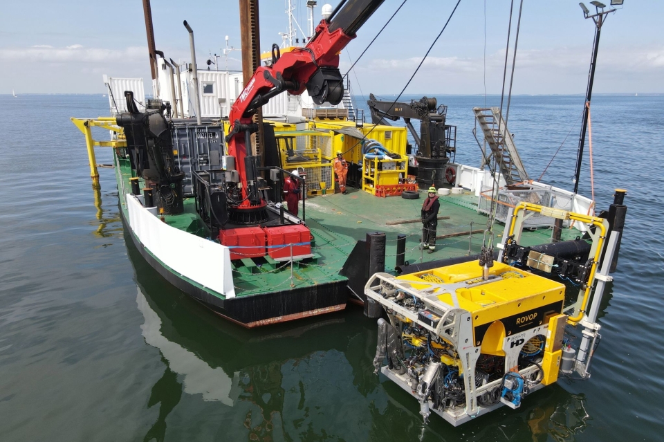 Zuwasserlassen des ferngesteuerten Tauchroboters. Foto: Boskalis