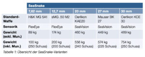 Grundsätzlich kann das gesamte Portfolio militärischer Klein- und Mittelkaliberwaffen in der SeaSnake Platz finden – und das auf einer in allen Achsen stabilisierten Plattform.