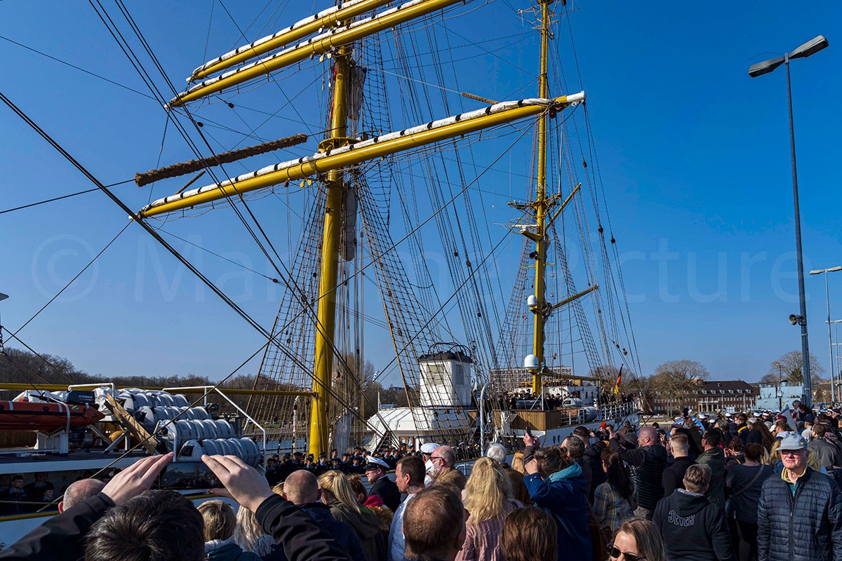 Das Segelschulschiff der Deutschen Marine beendet heute die 171. Auslandsausbildungsreise. Nach über vier Monaten Abwesenheit ist der Liegeplatz im Kieler Marinestützpunkt wieder belegt. Die erste lange Ausbildungsfahrt nach einer langen Zeit in der Werft.