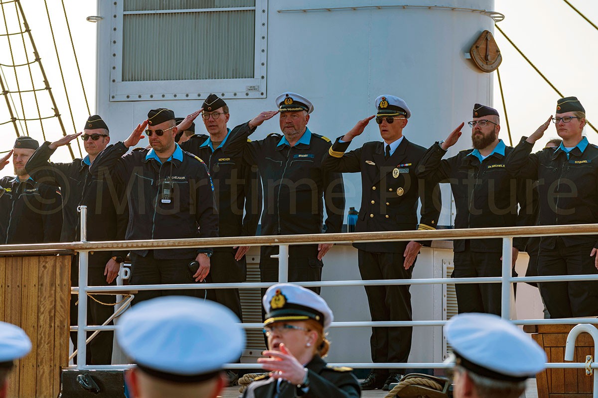 Ein besonderer Moment ergab sich für den Kommandanten. Das Segelschulschiff traf in See auf die Fregatte SCHLESWIG-HOLSTEIN, auf der Kapitän zur See Brandt in den Jahren zwischen 2009 und 2011 ebenfalls Kommandant war. Ein sehr bewegender Moment, so der 55-jährige Marineoffizier.